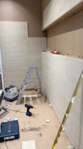 يشمل تغيير البلاط أو السيراميك أو إصلاح الأرضيات المتضررة.